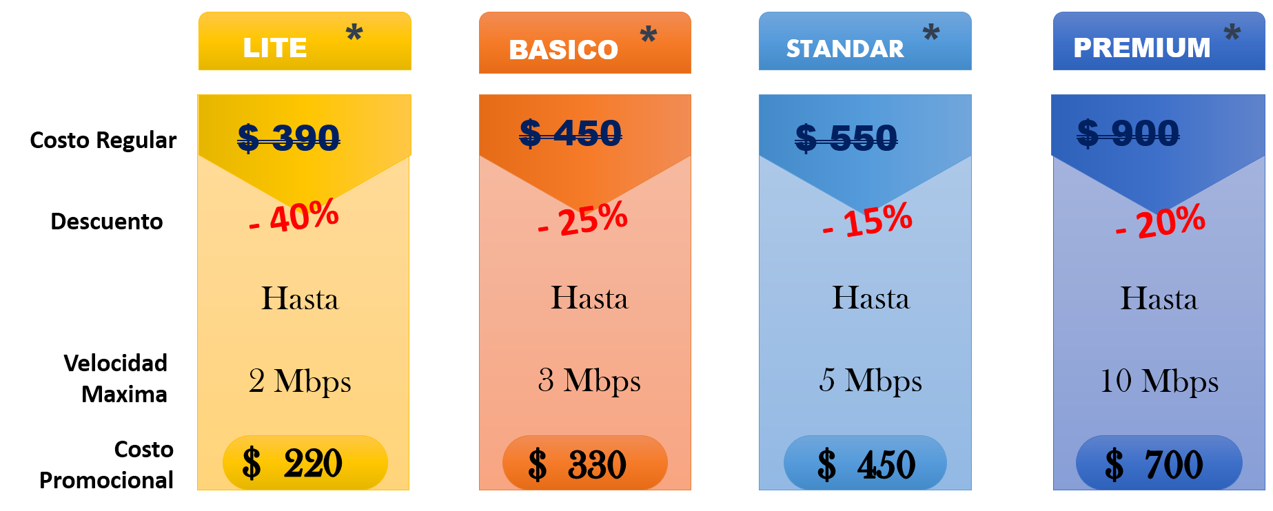 Planes diseñados especialmente a tu medida ya sea que solo requieras hacer tareas e investigaciones podrás utilizar el plan Lite o Básico, Si quieres ver películas, video o descargar más rápido tenemos la velocidad requerida en los planes Standar o Premium.